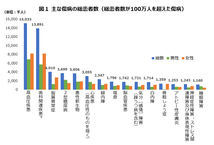 高血圧に続き、歯科疾患を持つ患者さんは多いです。