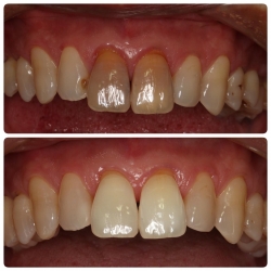 ☆失活歯(神経を取って変色した歯)の中でも歯質がある程度しっかり残っている場合が適応になります。