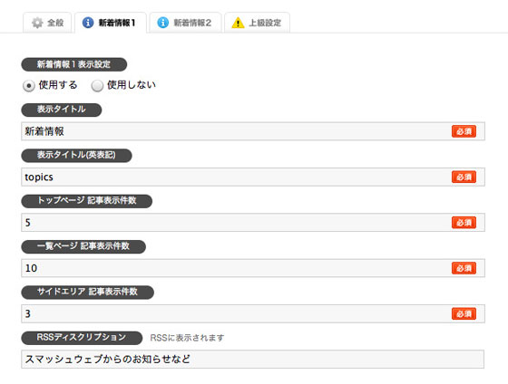 新着情報1,2の設定