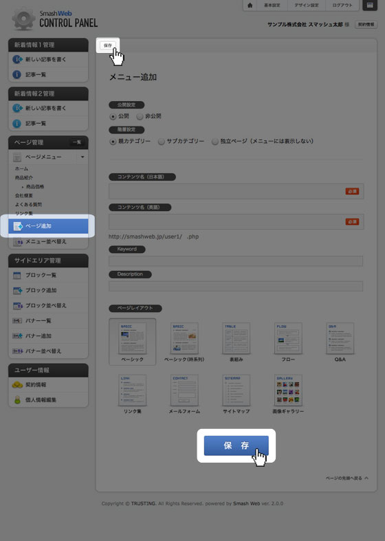 スマッシュウェブでは、ページごとにレイアウトを変更出来る仕組みとなっています。