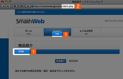 1・・・・メニューやページ見出しの英語部に表示