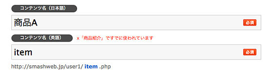 URLにも利用されるため、同じ名前を使うことはできません。すでに同じ英語名が使用されていたら警告が表示されますので別の英語名を入力して下さい。
